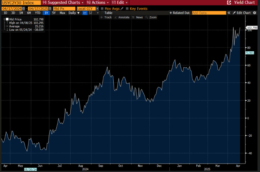 Treasurys and banks. US banks hold US Treasuries as their “risk-free” asset. For every $1 you give a bank, they lend out about 90 cents and keep 10 cents in Treasuries. What if Treasuries do indeed stop trading as a risk-free asset? Then what is now a tariff-induced slowdown can become a credit crisis as the value of the bank’s risk-free assets decline. Anyone who is leveraged to Treasurys could be hurt.