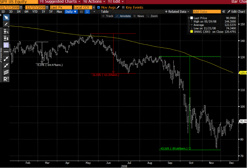 Stocks. Despite the above, stock markets are off their lows. Many I know are still thinking “buy the dip.” Stock prices are discounted using the Treasury yield, meaning the higher the yield, the lower the stock price should be. To me, the tremors now are similar to 2008. And in 2008, stocks did nothing for long periods of time. Stocks rallied after Bear Stearns imploded in March, falling sharply (40%+) only in the second half of the year, as I show below.