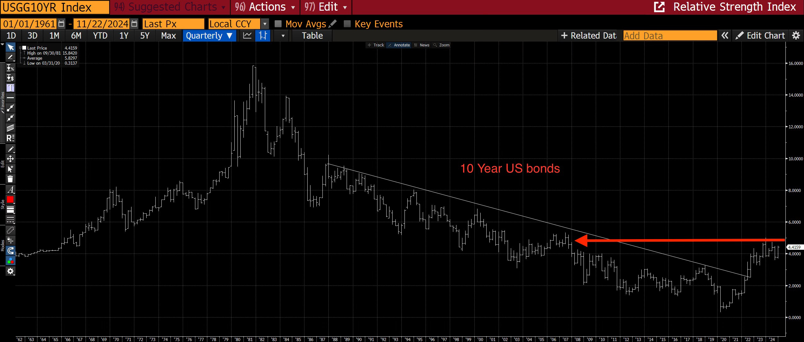 So let’s imagine the interview process. On the one hand, Trump’s agenda is crystal clear—big tariffs, America First. On the other hand, the reality of the budget situation and debt is also clear, as are the knock on effects of higher rates on the economy.