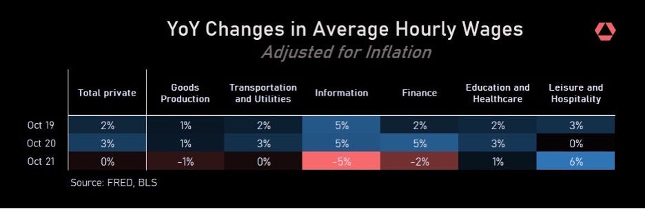 Last week, the US government issued a report showing prices are rising quickly relative to history. If you look at the wages of people who get paid by the hour, they are beginning to contract if you measure them after inflation. This is a big deal. This means the truck driver or roofer is seeing the dollars in their paycheck increase and what they can buy in the store decrease, as the chart below from Rose shows. If you wonder what would crush Democrats in mid-term elections, this might be it.