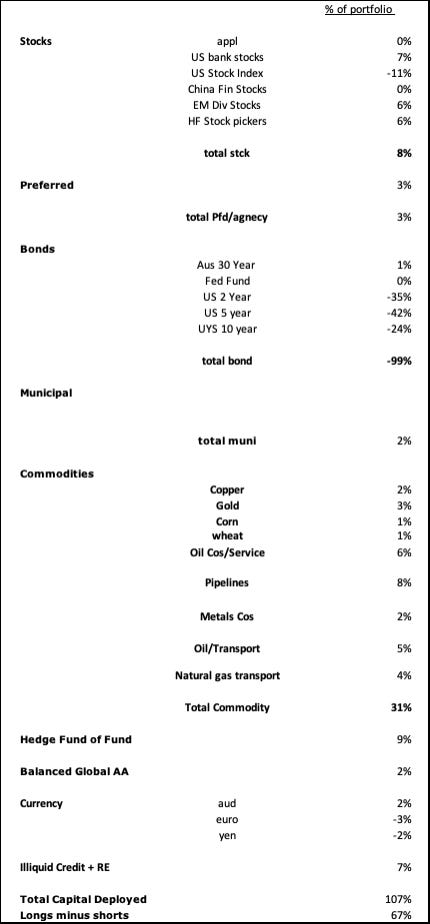 That seems about right to me and I covered a short position I’ve had in Fed Funds futures for over a year. The big thing that stands out to me is how low 10 year yields are and, as yields move higher, how high the price-to-earnings is on stocks, particularly tech stocks. I’ve shared my asset allocation recently but have a bunch of new subscribers, thus the repeat below. Again, not investment advice.