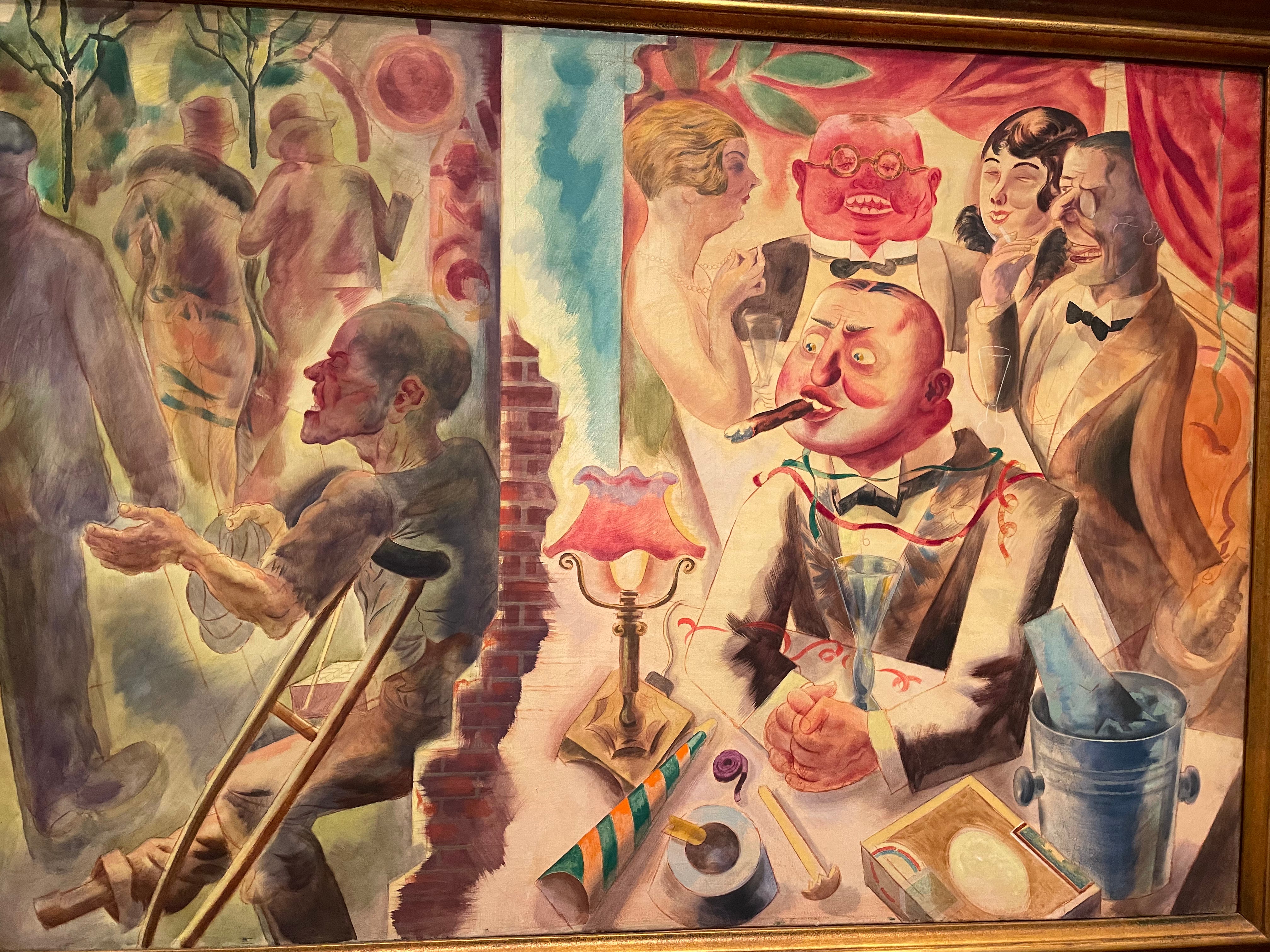 But the price of the things you buy in the store, like onions, is determined by a network of intricate relationships tied to weather, fertilizer, transportation and electricity costs, debt and the labor market. Central bankers need to understand all those relationships to print the right amount of money so the price of onions doesn’t move around a lot. That’s impossible. Now that inflation is out of control, the authorities are rapidly removing the intoxicant, money. Psychological studies indicate a rise in depression when stock portfolios decline, ample evidence of the power of an intoxicant. I was reminded of this famous Gorsz painting, the haves and have nots.