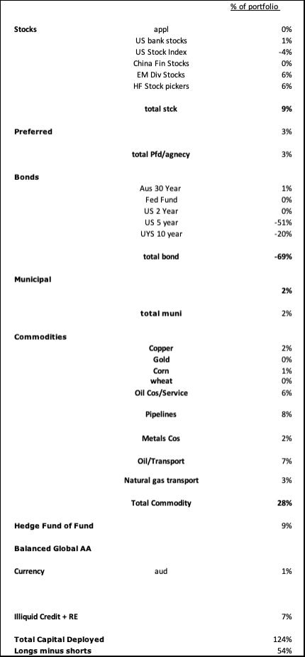 I’m up 1.7% for the year, unaudited and some of my illiquid returns have not yet reported and should help a bit. Below are my holdings.