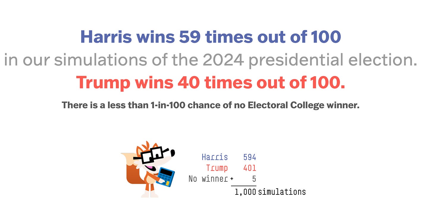 Below are the election odds from 538.