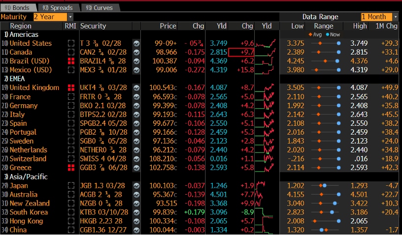 This market is now pricing in rate hikes in many parts of the world. The bond market is ignoring the coming growth shock and focusing on inflation, which might be because 2022 is fresh in people’s minds and central banks might indeed raise rates if energy prices don’t rapidly fall.