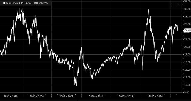 A return to more normal P/Es, which higher interest rates will induce, would suggest a 20% decline in stock prices. If stock prices fall, discretionary spending will grind to a halt. P/Es have not mattered for a few years, but they might now.