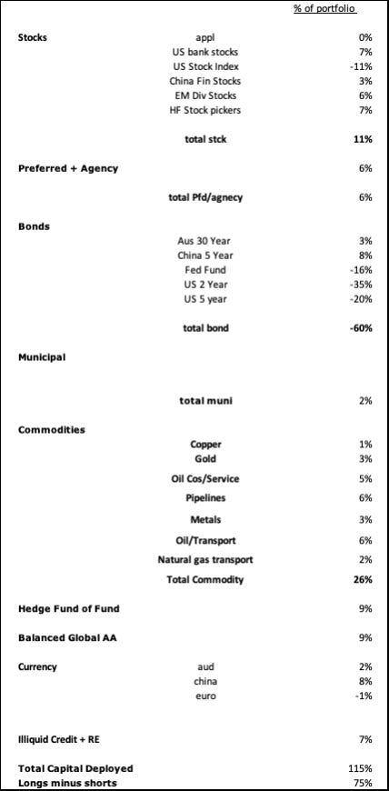 My going forward picture is for a significant inflation shock that requires the Fed to tighten, possibly enough to cause a recession. I also think the war will drag, meaning this commodity shock will persist, though I did take profit on some positions, like long wheat and corn. Risks to my portfolio are that the Russian army collapses faster than expected or that markets begin to seize up (note the nickel market) and the Fed decides not to tighten. I can go into my logic more later but, for reference, this is where I am as of today.